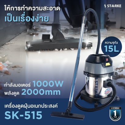 เพิ่มประสิทธิภาพการทำความสะอาดของคุณด้วยเครื่องดูดฝุ่นแบบดูดฝุ่น-ดูดน้ำ STARKE ให้ประสิทธิภาพในการใช้งานสูง แบบ 1 มอเตอร์ กำลังไฟ 1200 วัตต์ สามารถใช้ดูดฝุ่น และของเหลวได้ในเครื่องเดียว พร้อมรับประกันสินค้า 1 ปีเต็ม เหมาะใช้งานภายในโรงแรม โรงงานอุตสาหกรรม และร้านคาร์แคร์