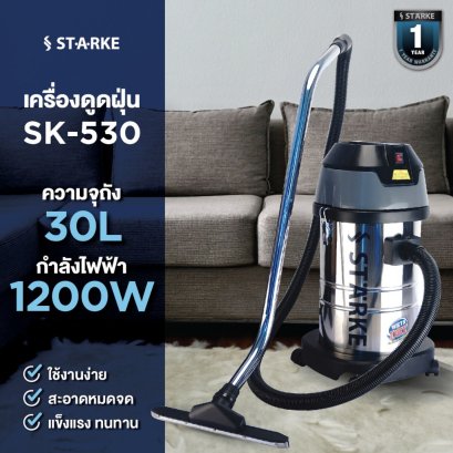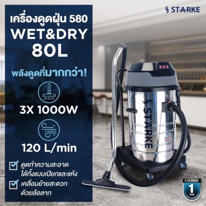 เครื่องดูดฝุ่น STARKE SK-580 3000 วัตต์ 80 ลิตร - เครื่องดูดฝุ่น STARKE สามารถใช้ได้ทั้งการดูดแห้ง และดูดเปียก รวมถึงของเหลว (ยกเว้นที่มีฤทธิ์กัดกร่อน และด่างที่มีความเข้มข้นสูง) โดยตัวถัง ผลิตจากสเตนคุณภาพเกรด 304 มีคุณสมบัติป้องกันสนิม ทนทานต่อการกัดกร่อน ไม่จับคราบ ทนต่อความชื้นได้ มาพร้อมล้อเลื่อนจำนวน 4 ล้อ ง่าย ต่อการเคลื่อนย้ายทั้งพื้นผิวเรียบ/ขรุขระ นอกจากนี้ มาพร้อมอุปกรณ์ครบครันให้คุณเริ่มต้นใช้งานได้ทันที เหมาะสำหรับงานโรงแรม, สถานศึกษา, ห้องแลปทดลอง, โรงงานอุตสาหกรรม, ร้านคาร์แคร์, ร้านอาหาร/ร้านคาเฟ่ เป็นต้น