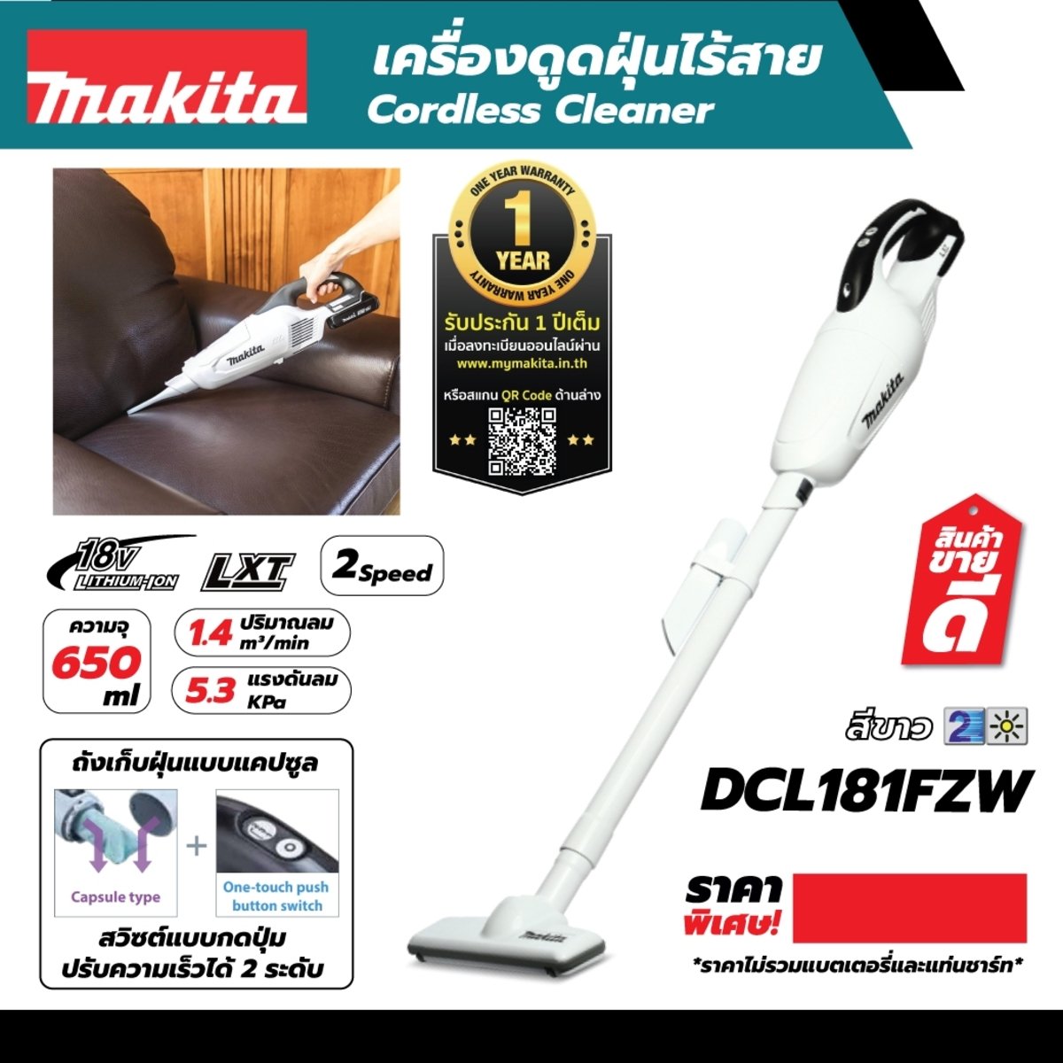 เครื่องดูดฝุ่นไร้สาย 18 โวลต์ สีขาว MAKITA รุ่น DCL181FZW